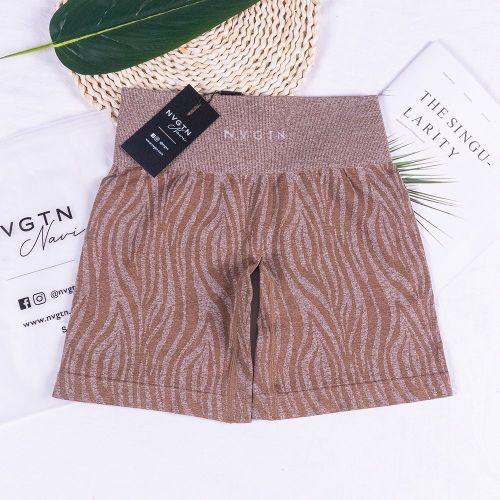 Khaki Zebra Camo Seamless Shorts : Nylon and Spandex Seamless Leggings Femenino