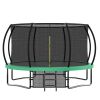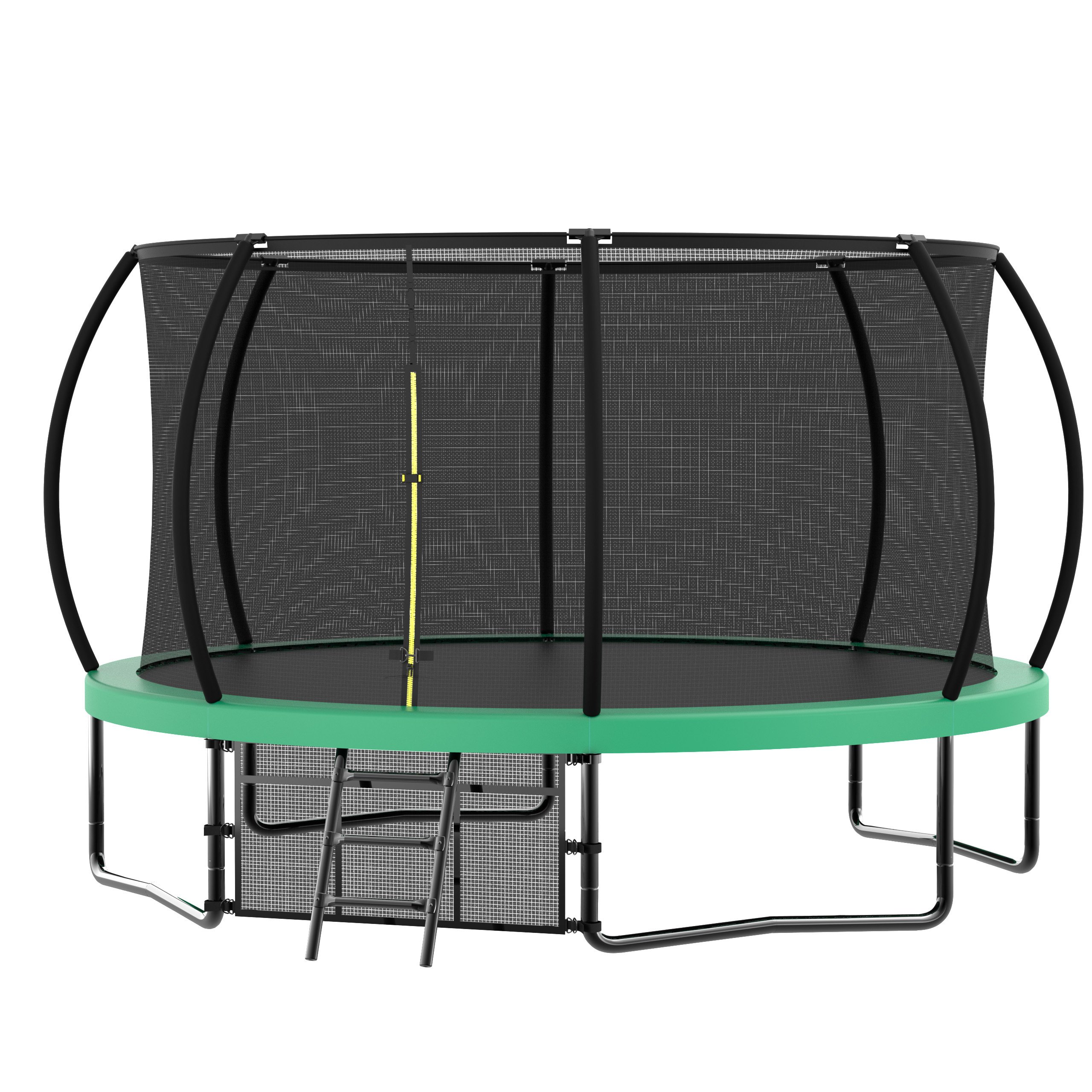 Safety First-12 FT Trampoline is equipt with 8 high safety enclosure poles and heavy gauge galvanized rust resistance steel construction. 4 W-shaped legs secure stability.