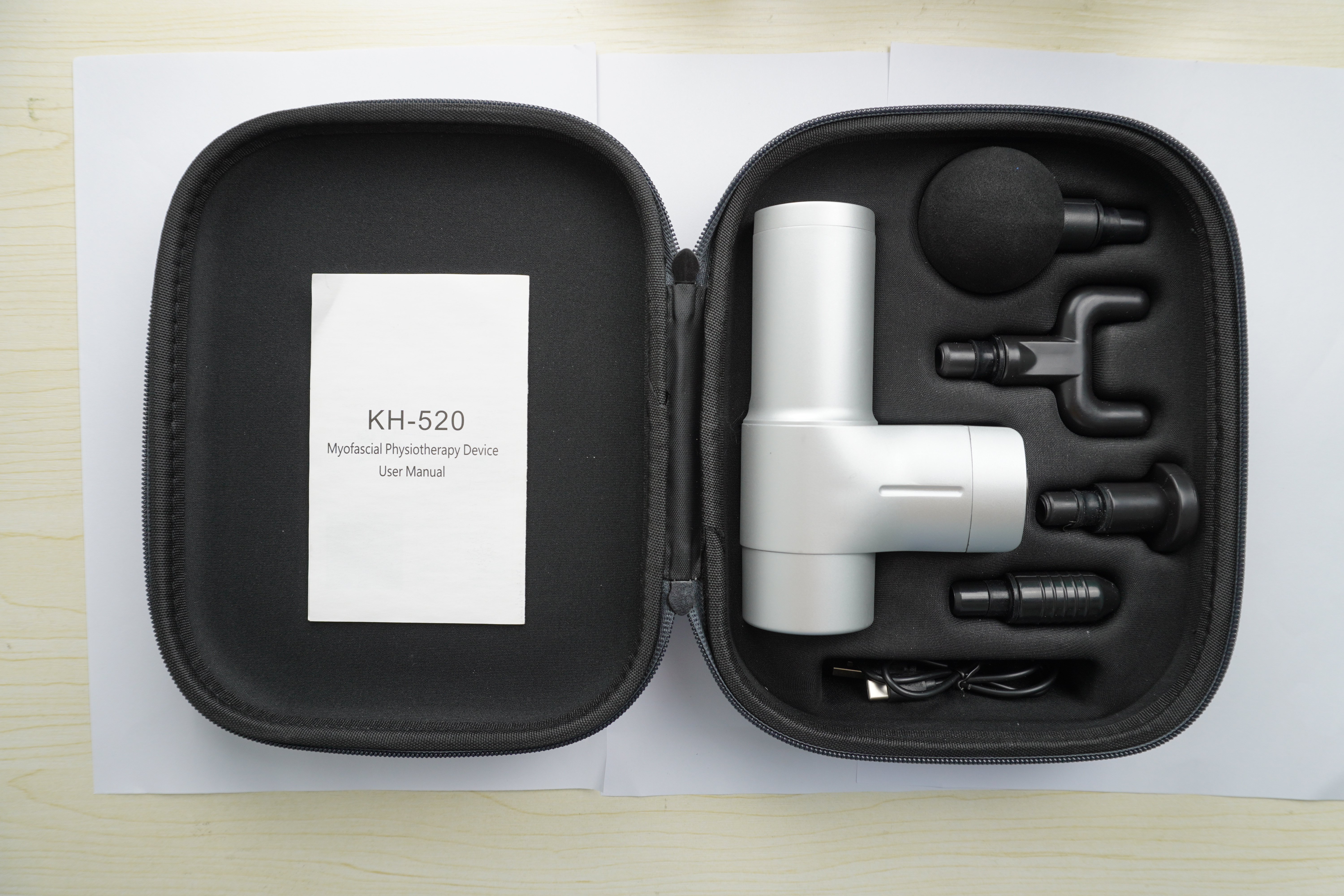 A number of removable massage heads are carried in the package to facilitate the use of muscles in different parts.