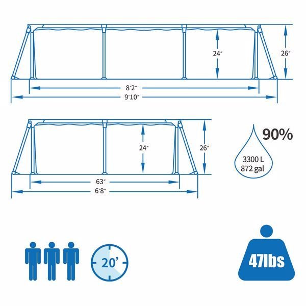 Material: The pool is made of high-quality PVC and frame material, safe, great durability and stability.combined with the strong 3-ply material liner and a beautiful design, offering a premium pool experience.