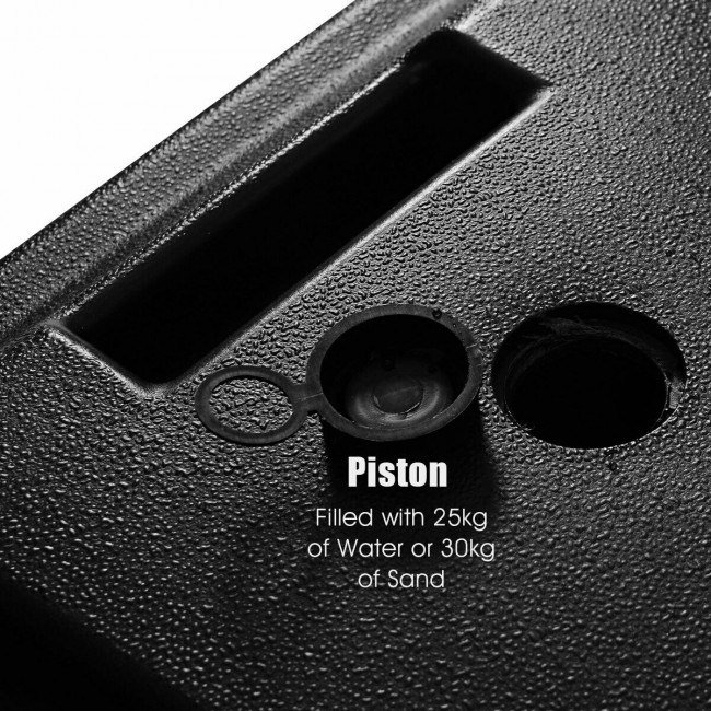 Transportable Heavy-duty Base with Wheels: The entire system is supported with a blow-molded durable PE base filled with sand or water, which can withstand against the strong wind. Also, wheels on the bottom to make it easily moved to your desired positions.