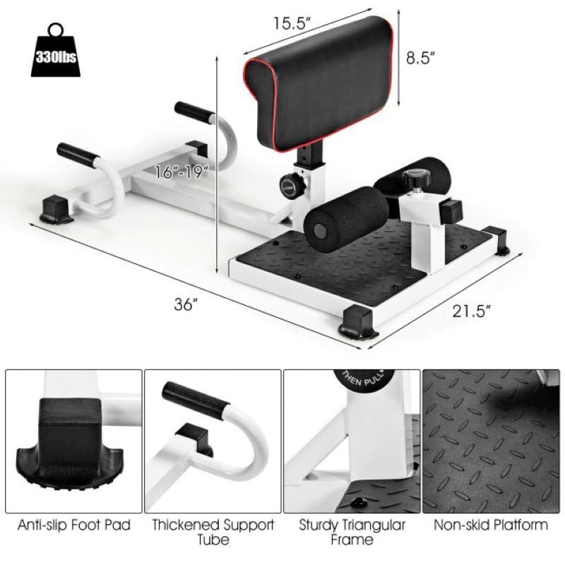 It is an ideal body trainer for a sit-up, back exercise, push-up and flat support to greatly exercise your abdomen, leg muscles and gluteus. With a load-bearing of 265 lbs, this squat is sturdy, durable and hard to deform or shake. The bottom is designed into a t-shape to ensure its stability. It can be adjusted the heights of the cylinders and mat with the knobs to meet the different people’s needs. Ergonomic leg cushion with PVC+PU cover supports your legs softly to make sports more comfortable. 4 enlarged footpads at the bottom will prevent skid and protect the floor. Slipping can be effectively prevented due to the non-slip handles and the front pedal. Two wheels in the front will help girls move it easily without much effort. And it can be stored or cleaned very easily.