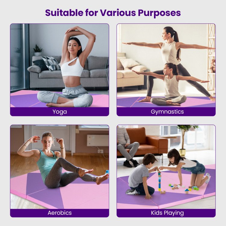 5.Space-Saving Design: This gymnastics mat features a foldable 4-panel design that allows for easy storage and space-saving convenience. Whether you're a professional gymnast, athlete, or fitness enthusiast, this versatile mat is perfect for various exercises, stretches, and routines.