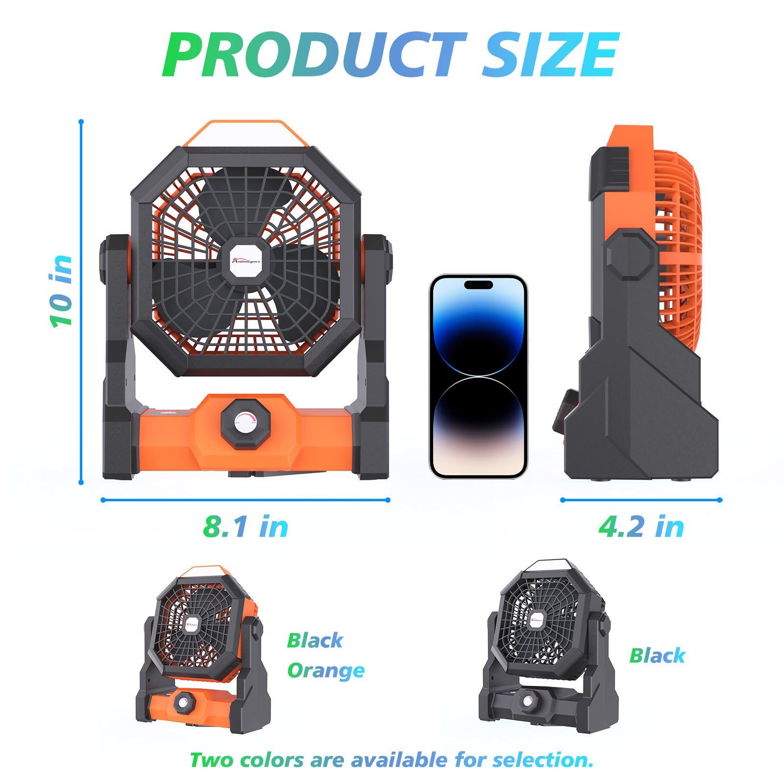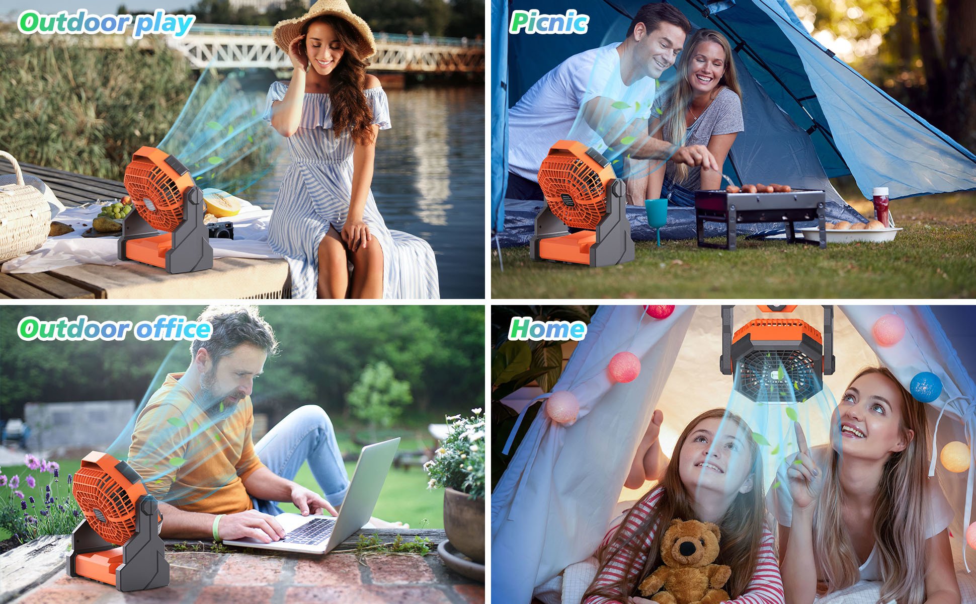5.Sturdy & Anti-drop: Made with durable ABS material, our fan can withstand even the toughest outdoor conditions.Rechargeable fan camping is perfect for Outdoors Picnic Barbecue Fishing Travel.
