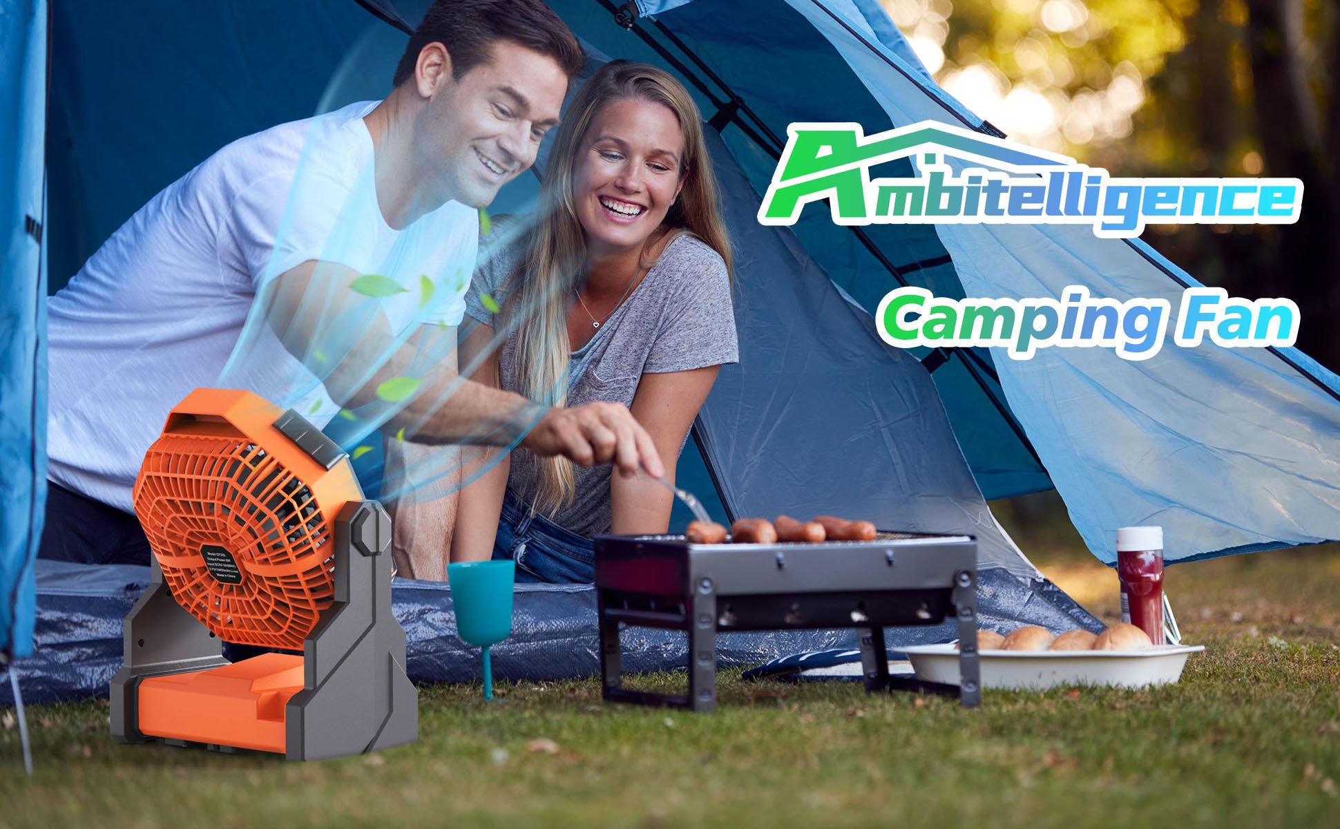 2.Camping Fan with Hook: With a foldable hook for hanging and a stable base for use on any surface, the Ambitelligence Camping Fan is perfect for indoor and outdoor use. Plus, its wide handle makes it easy to carry.