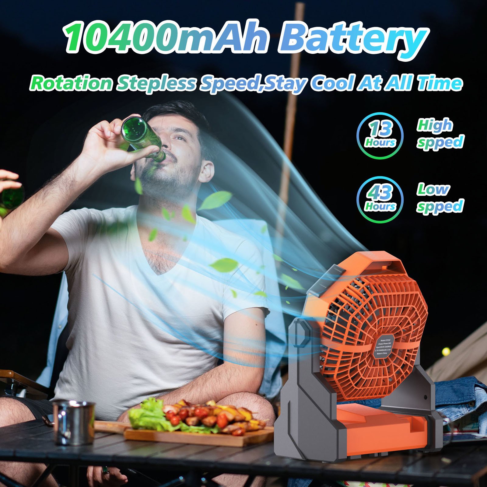 Home > Camping Fan Rechargeable, 10400mAh Portable Fan with LED Lantern, USB Battery Operated Tent Fan for Camping with Hook, 270° Rotation Personal Fan for