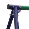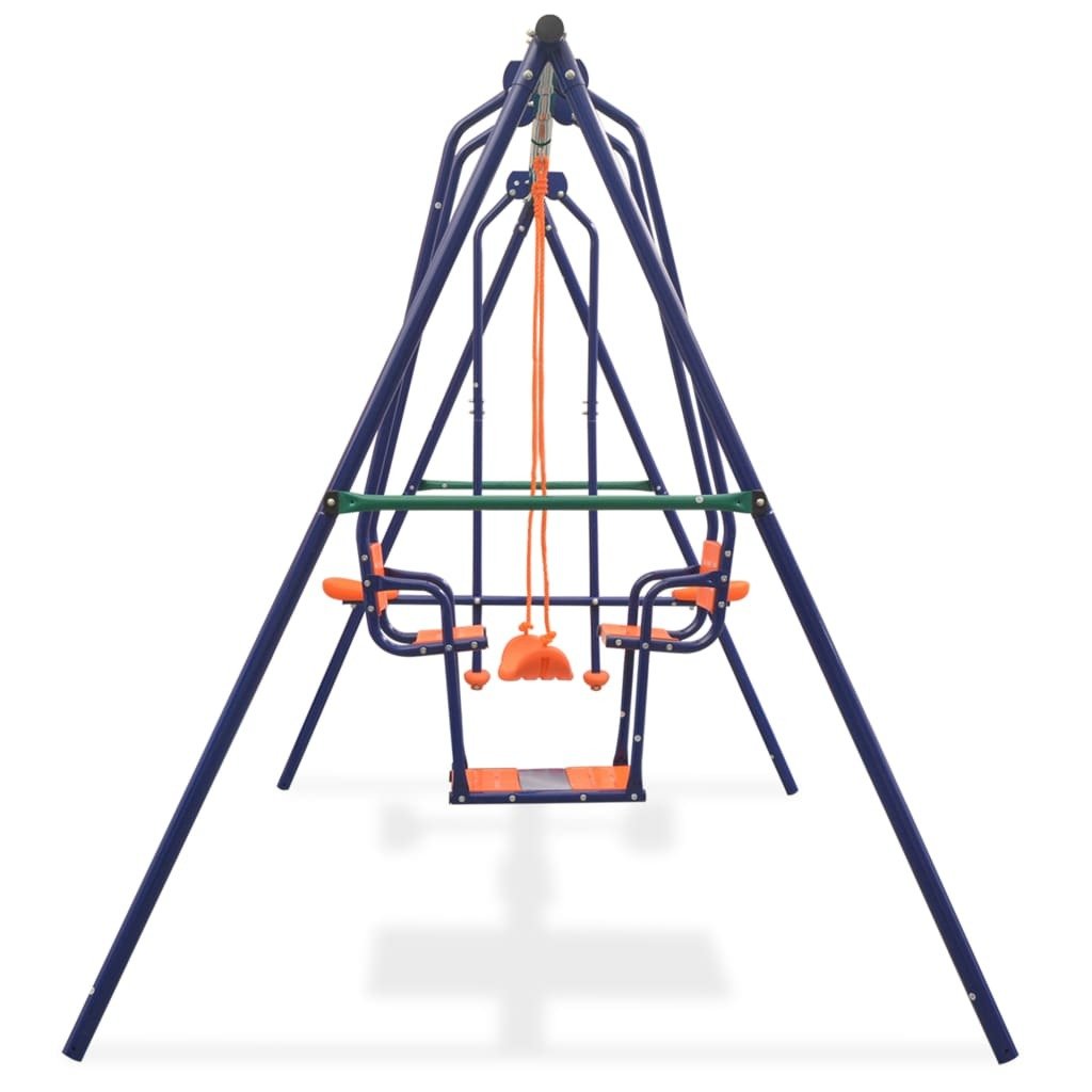 This swing set consists of a sturdy metal A-frame with a single swing, a face-to-face swing and a tandem swing seat. The face-to-face swing and the tandem seat are suitable for two children at the same time. Thanks to its sturdy steel frame and plastic seats, the set is extremely durable and weather resistant, while it is also easy to assemble. All swings are securely fixed to the sturdy A-frame crossbar sturdy brackets, bolts, hooks and ropes.